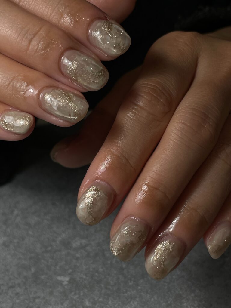ゴールドのきらめきを重ねぷっくり感も可愛いニュアンスデザイン✨